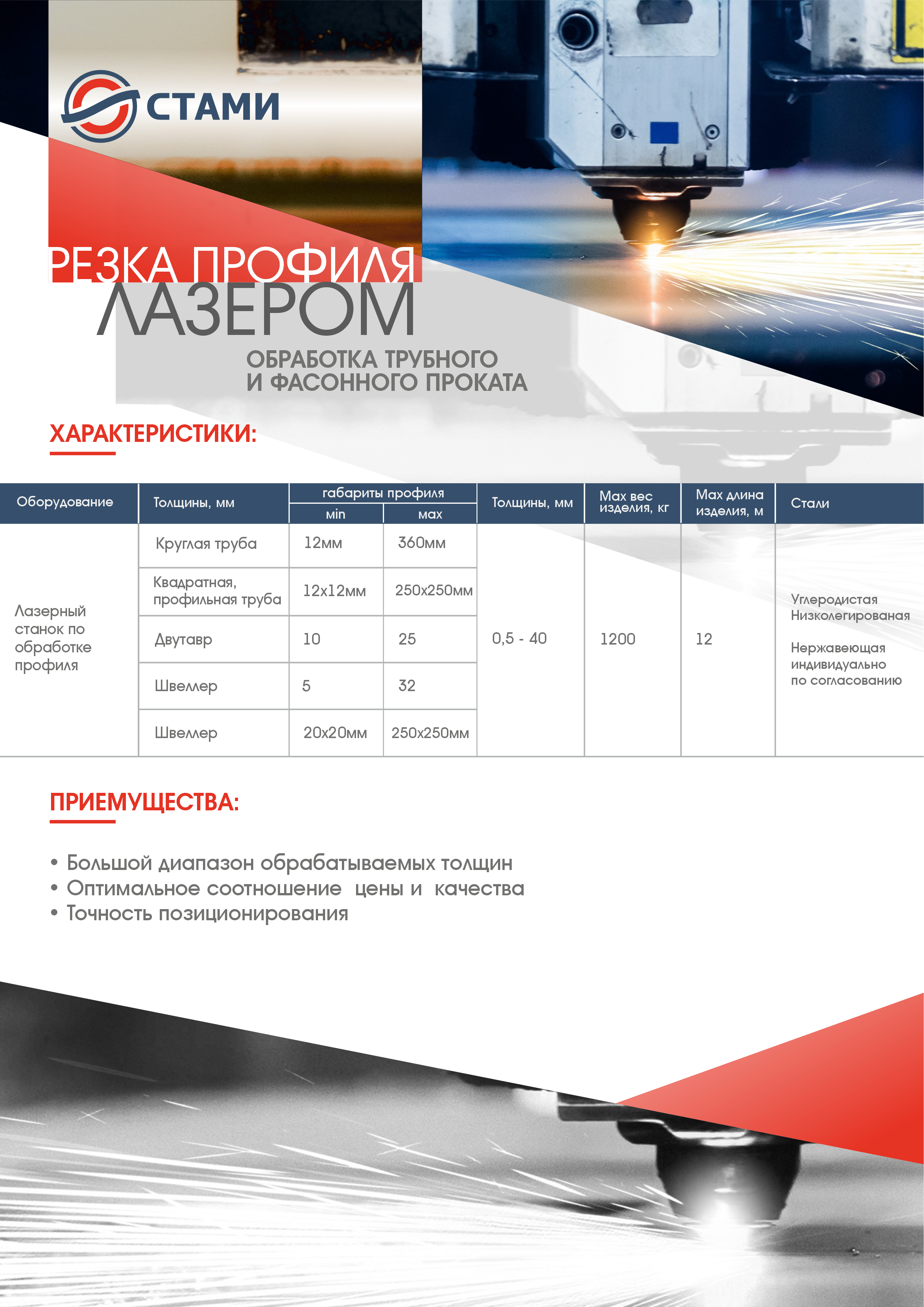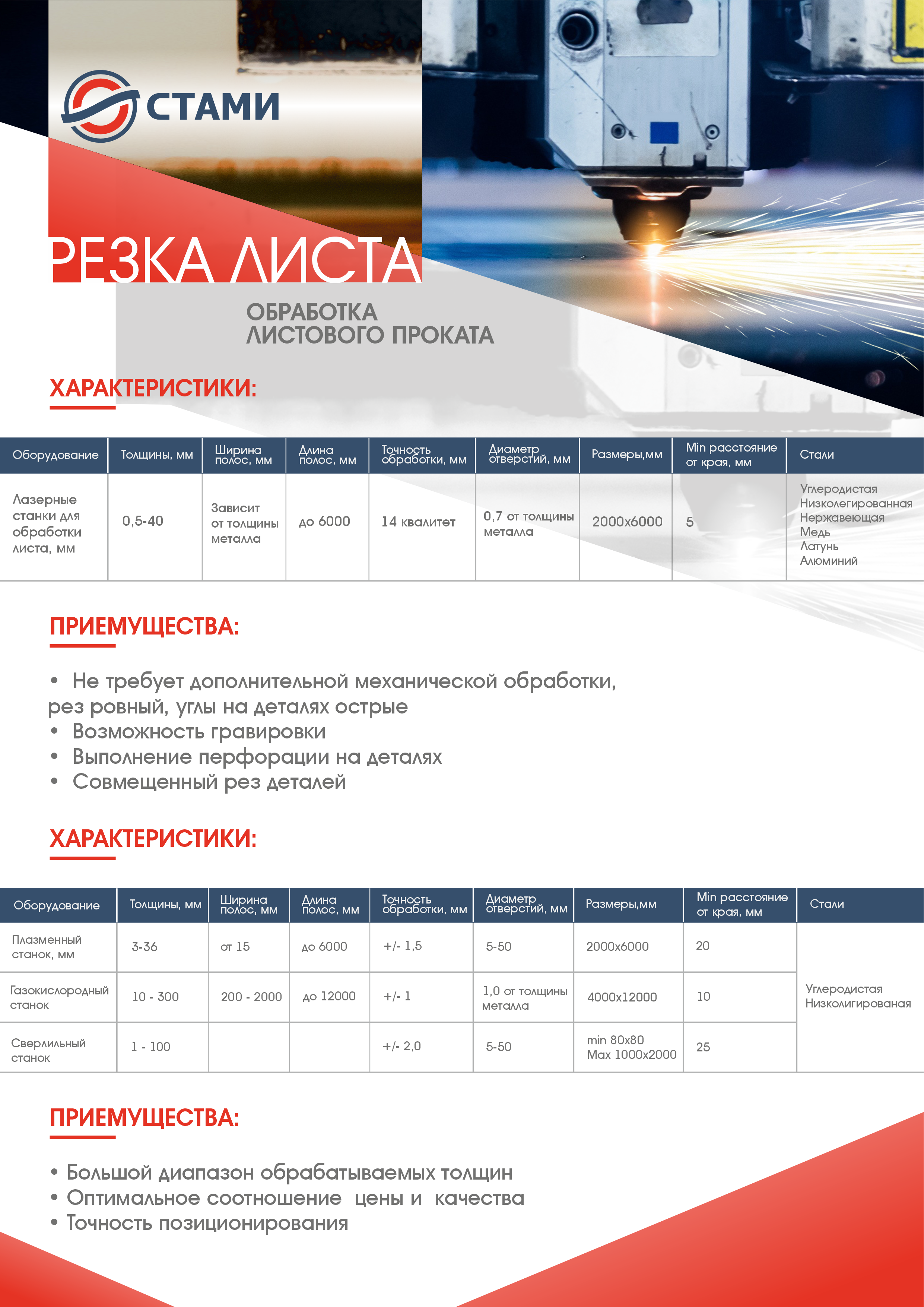 - Высокая точность раскроя листов по геометрии.
